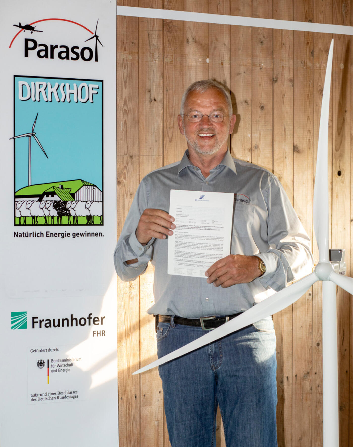 Der Dirkshof hat die luftverkehrsrechtliche Anerkennung für sein innovatives Konzept der Nachtkennzeichnung für Windkraftanlagen erhalten.