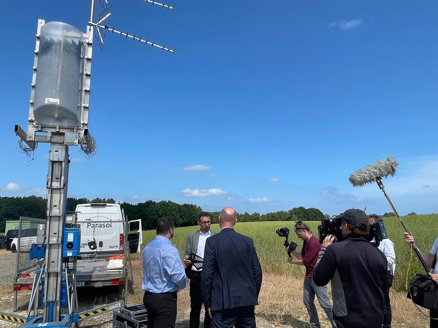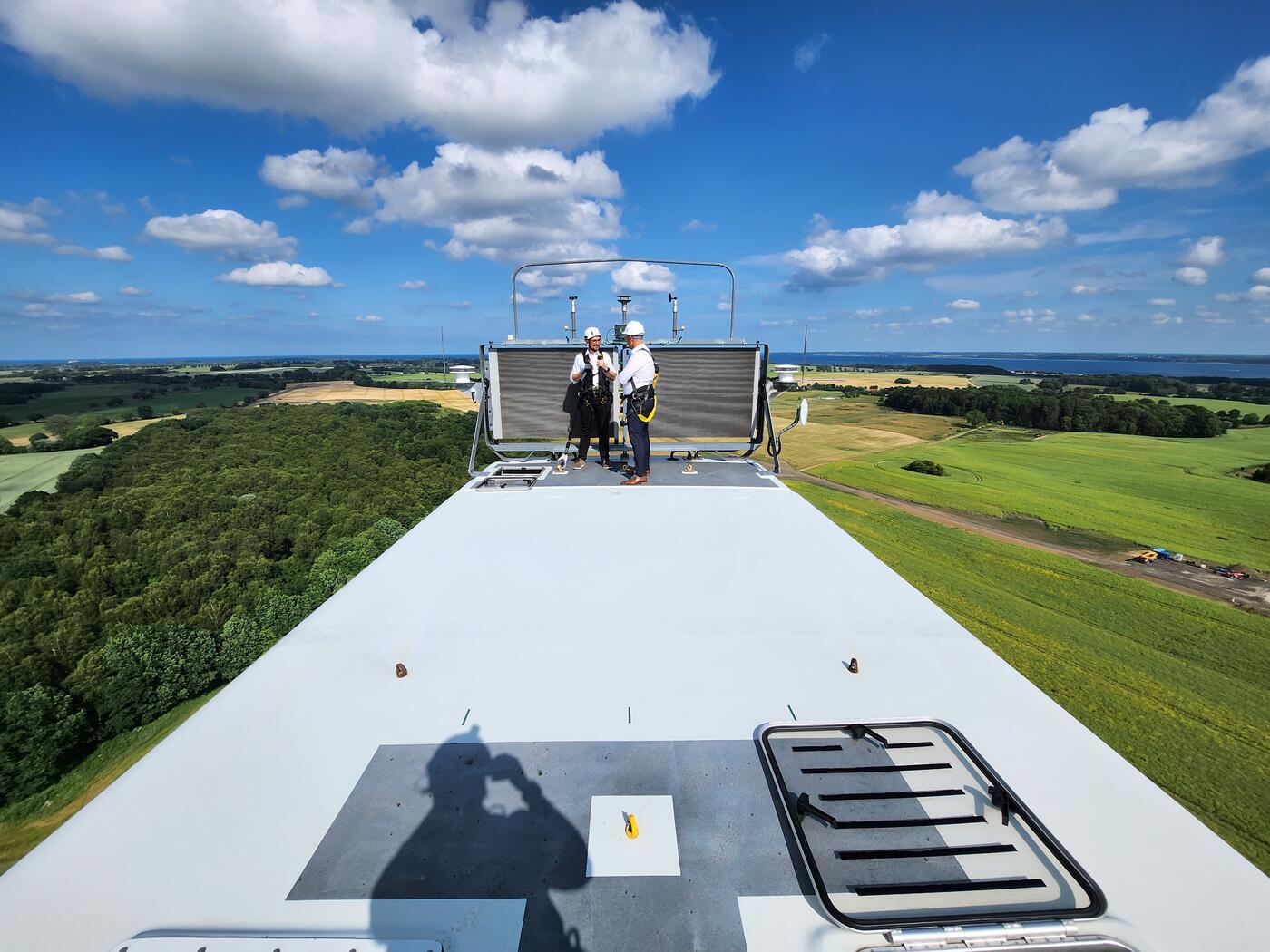 The Parasol team demonstrated the function of the passive radar system directly on site – on the wind farm – and then, of course, we also went up into the air, i.e. into and onto the nacelle. Here, Mr. Goldschmidt learned about the tasks of technical operations management.