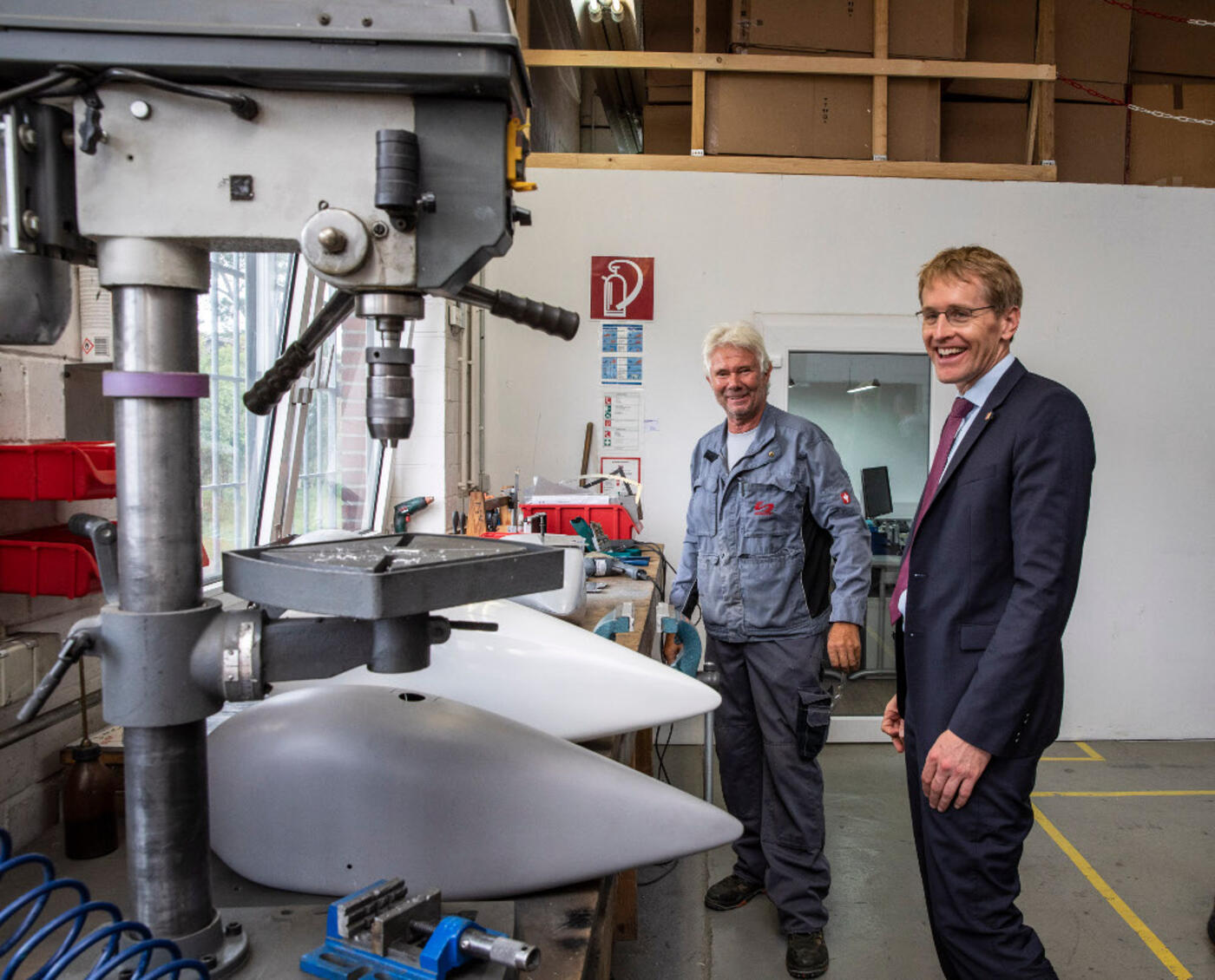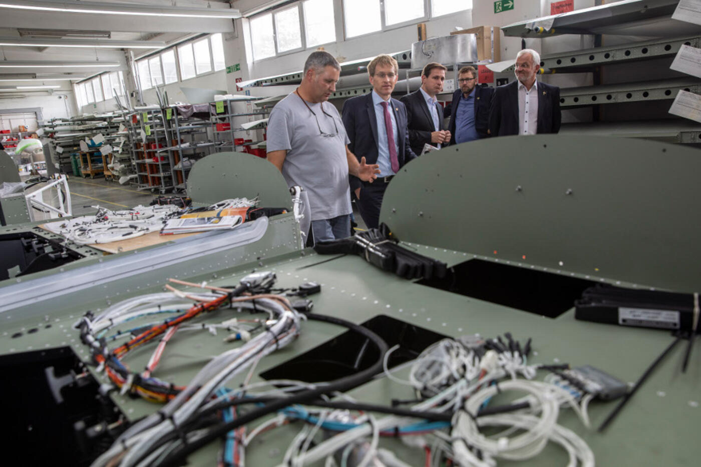 Prime Minister Daniel Günther visiting Breezer Aircraft