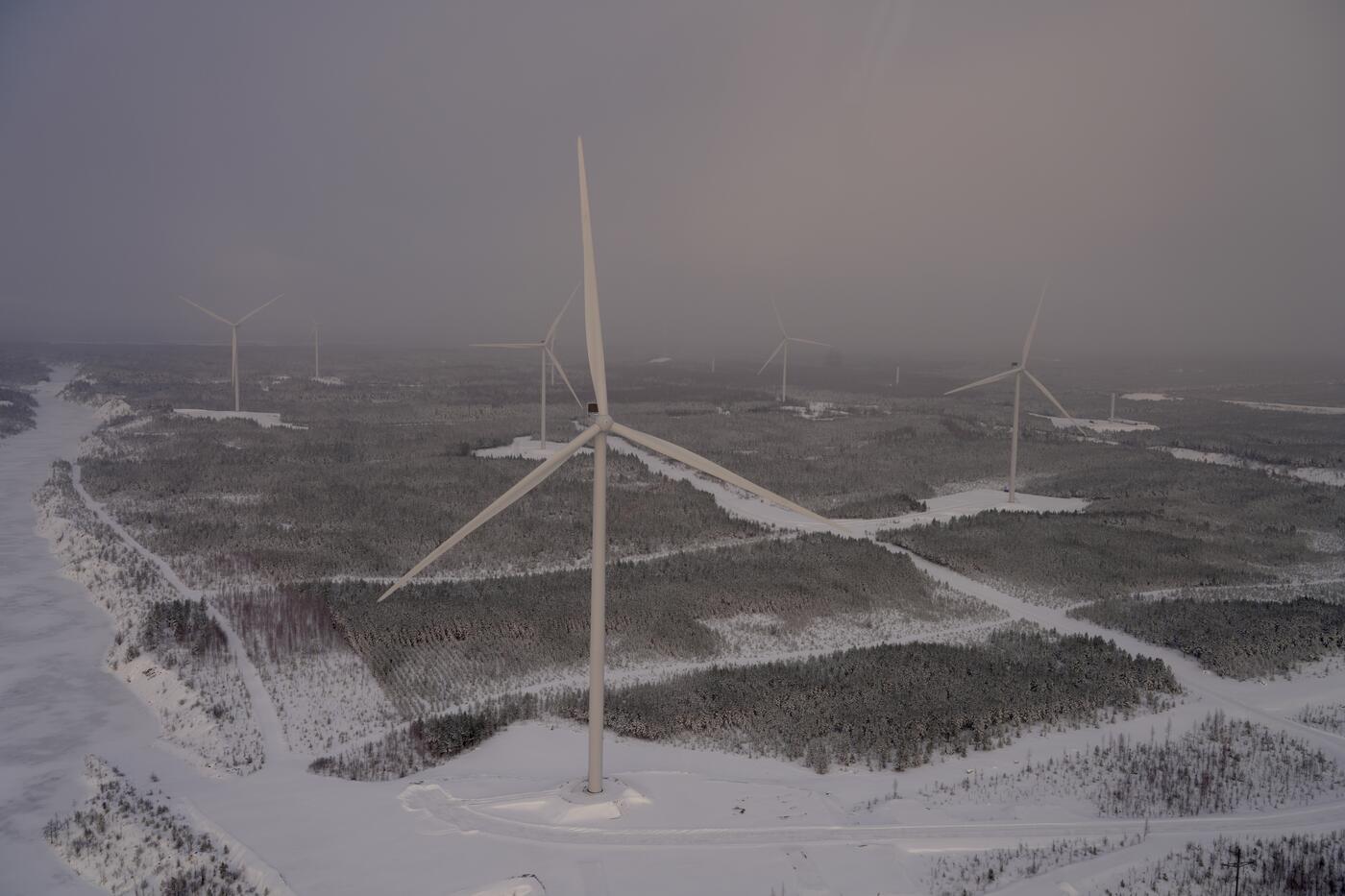 Jahresanfang 2024: alle 15 Mühlen wurden errichtet, nachdem es eine mehrwöchige Kältepause gab. Denn unter den winterlichen Temperaturen von mehr als Minus 20 Grad, konnte nicht an den Turbinen gearbeitet werden. Ende Februar 2024 waren alle Anlagen am Netz. Insgesamt erbringt der Windpark 67,5 MW Leistung.